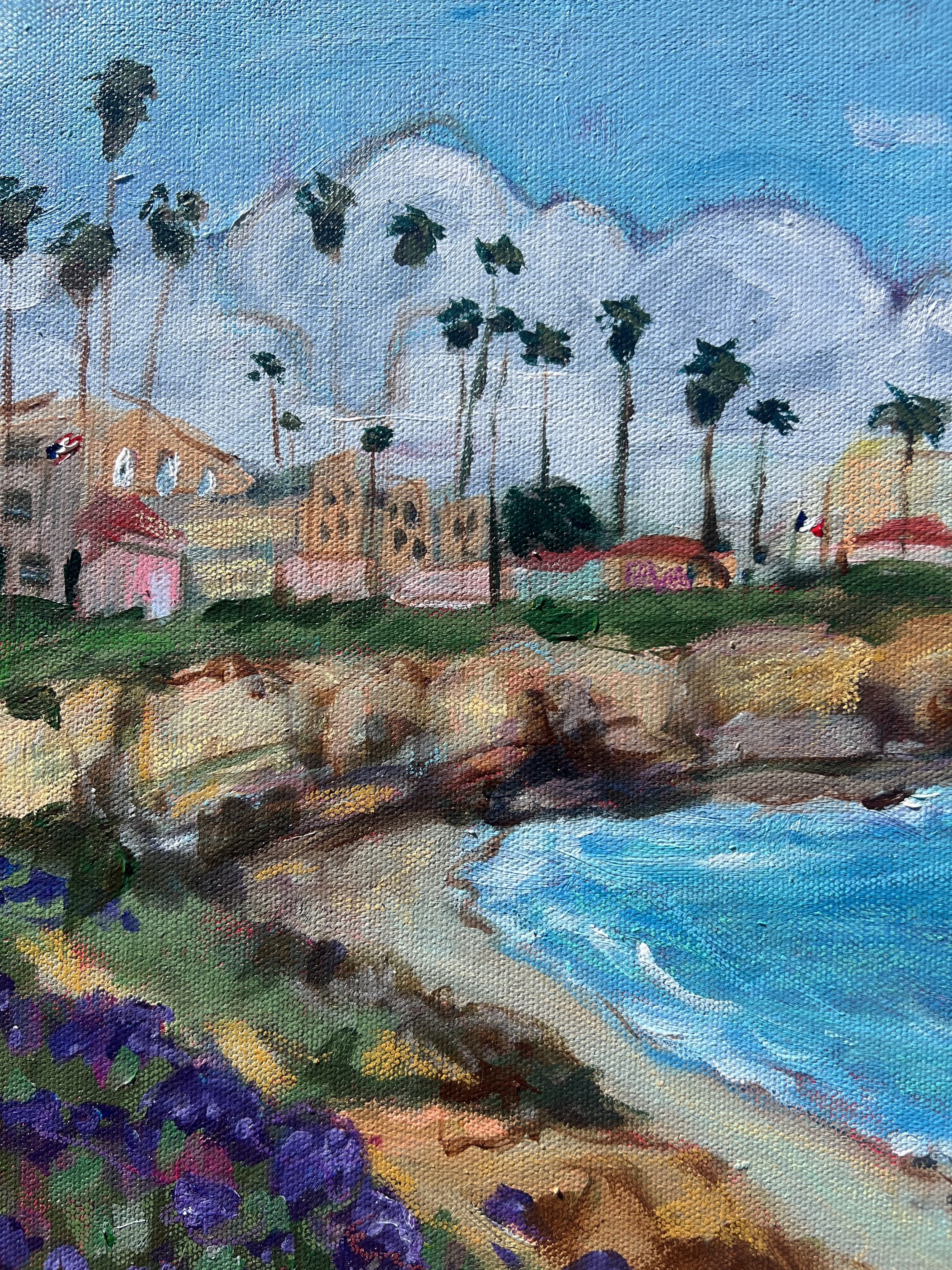 This 9 x 12 inch oil painting was inspired by the artwork of Claude Monet, a personal art hero of mine. I used his typical paint p22alette while depicting the botanical garden pond at Balboa Park San Diego to blend our two worlds. Giverny meets Southern California.