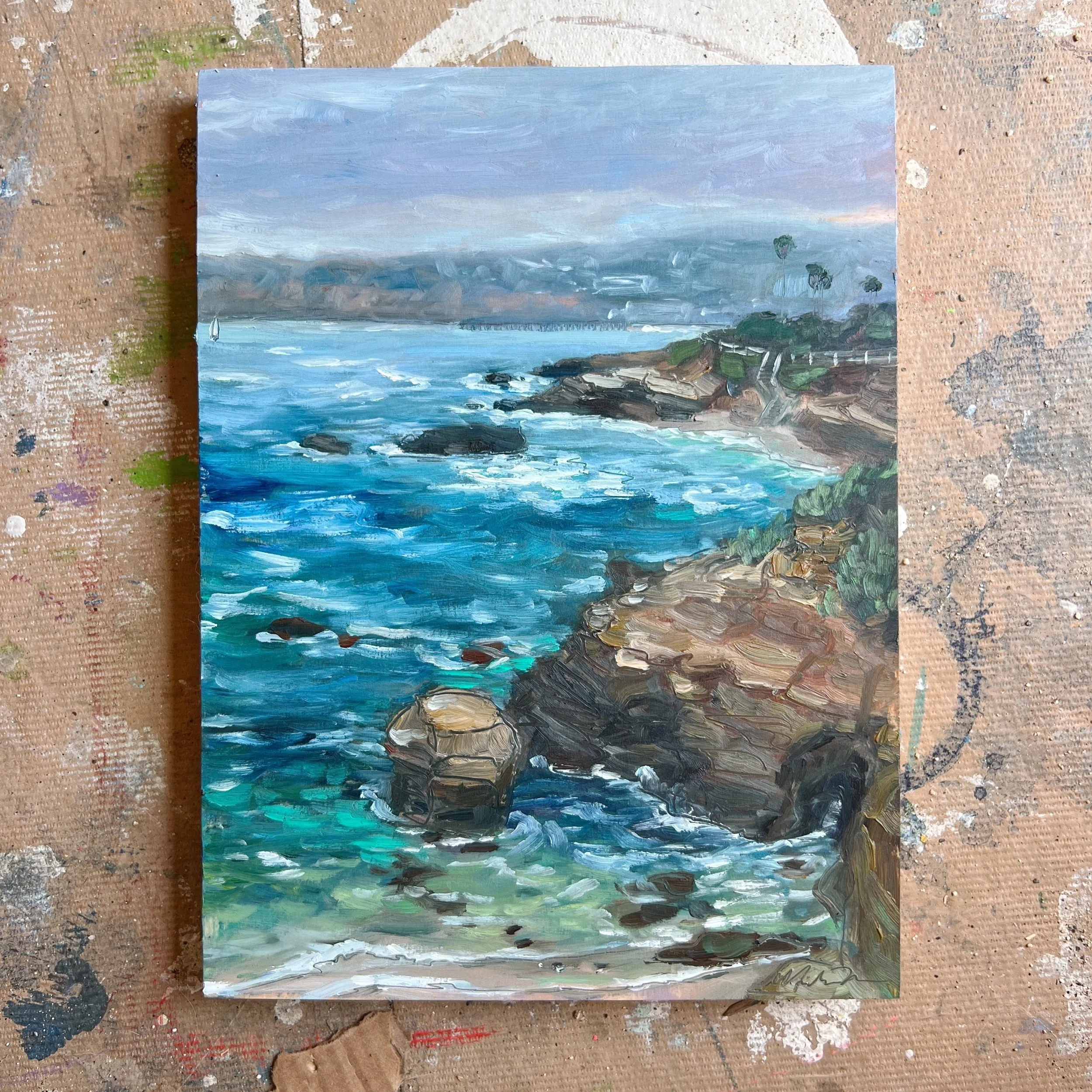 This 9 x 12 inch oil painting was painted en plein-air, meaning meaning “in the open air”, which refers to the act of painting outdoors with the artist's subject before them and in real time. Discover the essence of San Diego through these plein air paintings, each one a dreamy, vibrant snapshot of this city's most breathtaking locales. By purchasing these artworks, you invite the serenity of Souther California into your home. Each piece is not just a painting but an invitation to experience the captivating scenes of San Diego, allowing you to savor the city's unique atmosphere and beauty every day.
